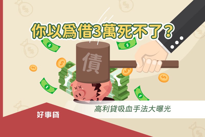 高利貸會用傳單、名片、貼紙或報紙廣告,登載「條件不拘」、「人來就借」、「超低利」等小額借貸廣告來吸引急需用錢者。再以各種名義向借款人收取費用、誘騙借款人簽下不合理的合約,別以為小額借款1~5萬沒有多少錢,高利貸會把你積欠的利息再併入本金計算,利滾利讓你瞬間變鉅額負債,等意識到自己受騙時,已來不及反悔。