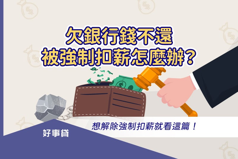 因為積欠卡費、貸款等銀行債務,被法院強制扣薪,會讓每個月實際領到的薪水縮水多少?有什麼辦法能盡快解除強制扣薪呢?本文將依序為你介紹欠銀行錢不還,可能面臨的法院強制扣薪,與停止強制扣薪的方法,想盡早擺脫強制扣薪對生活造成的影響,接下來的內容可要看仔細了!