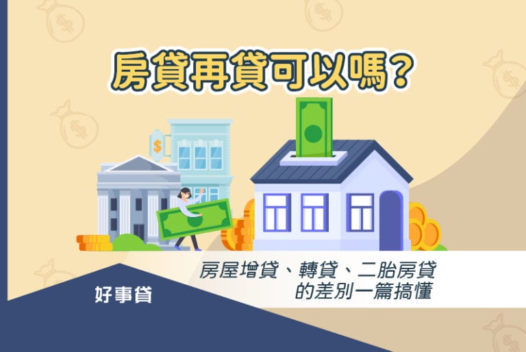 需要資金週轉時,房貸再貸是可以考慮的貸款模式。不過,因為房貸再貸還可以區分為房貸增貸、轉貸、二胎房貸等類型,加上申請管道繁多,建議在選擇時可以多加比較,並依據自己的需求與條件,選擇合適的貸款方案,才能讓你順利解決資金週轉的問題。