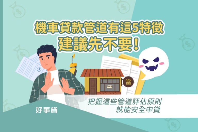 在選擇機車貸款管道時,應該優先考慮哪些因素呢?是貸款條件、貸款速度,還是額度利率?答案都不是,機車貸款管道最重要的評估關鍵,其實是「安全性」!本文將介紹4種最常見的機車貸款申請管道,並說明危險管道的5大特徵,最後再幫助你評估這些機車貸款管道的安全度,讓你安心申貸不踩雷!