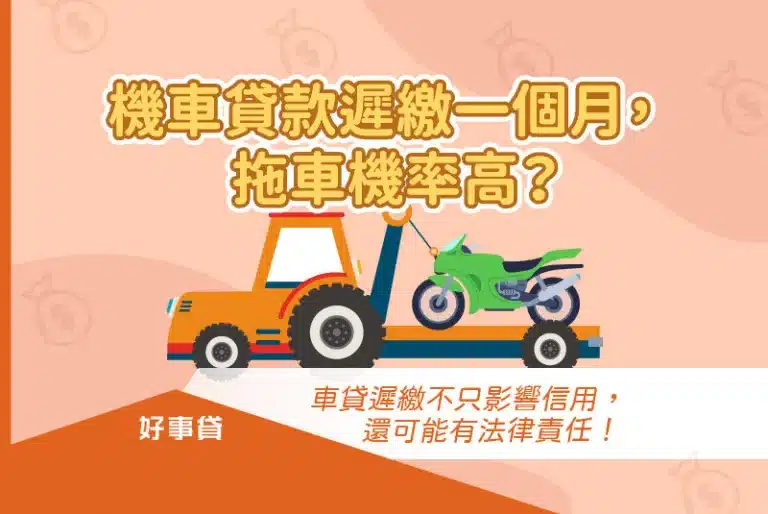 機車貸款遲繳的後果可大可小,如果只是一時忘記、遲繳幾天,都是可以被通融的,但若是長期或頻繁的機車貸款遲繳,卻可能衍生出嚴重的後果。好事貸提醒,信用破壞很容易,重新培養卻很難,因此一定要誠實面對自身能力,一旦出現車貸遲繳的警訊,就要趕緊審視財務情形,以免落入難以收拾的局面。