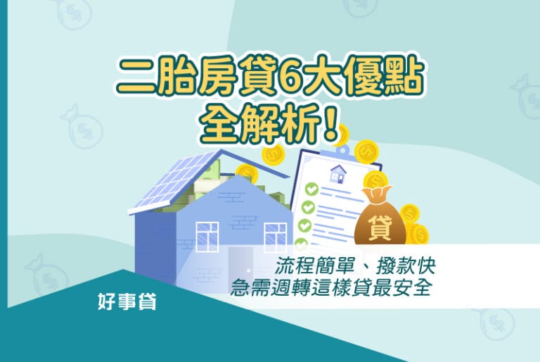 - 速度優勢:好事貸二胎房貸從審核到撥款最快僅需 3~5個工作天。